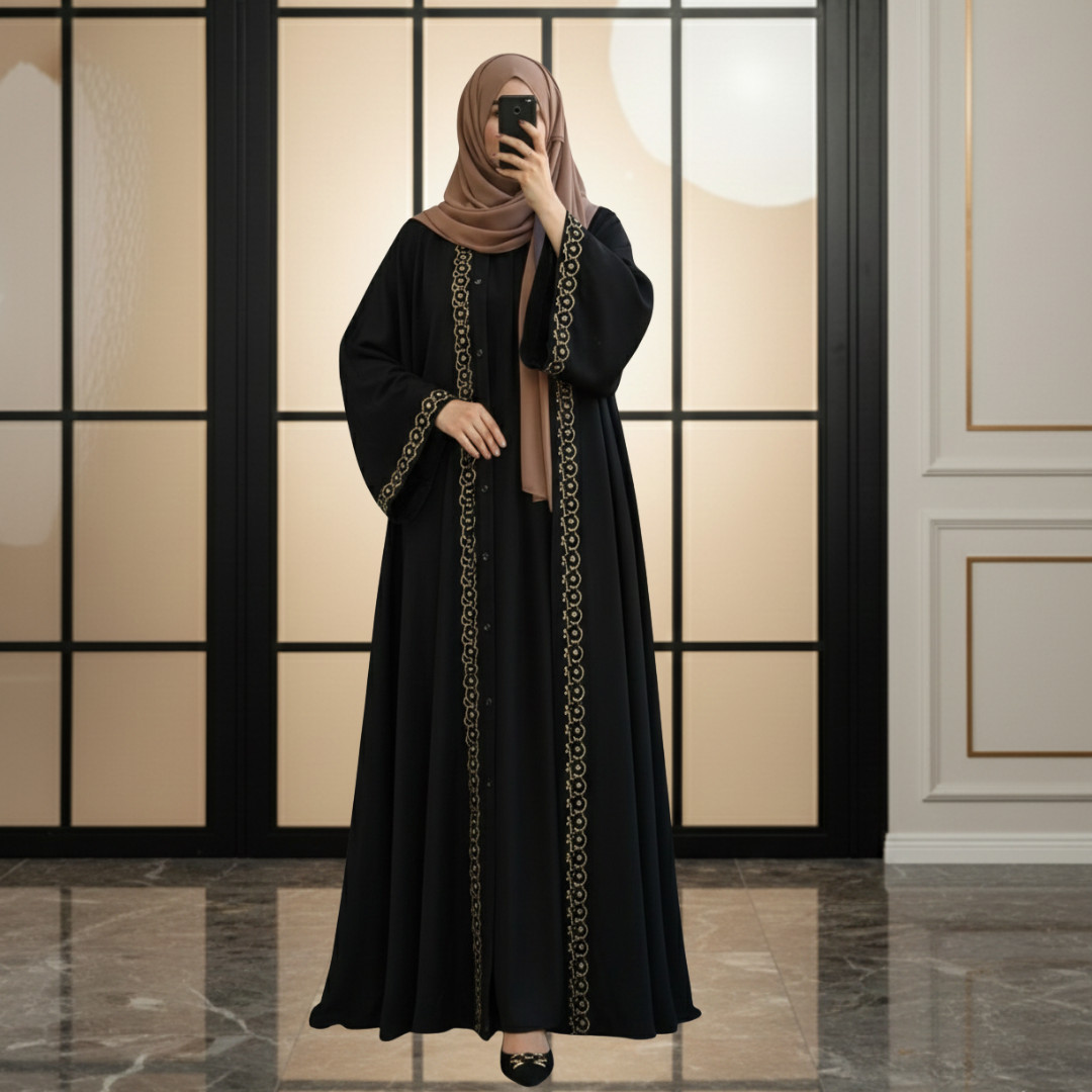 দুবাই চেরি এমব্রয়ডারি বোরকা (হিজাবসহ)- 50