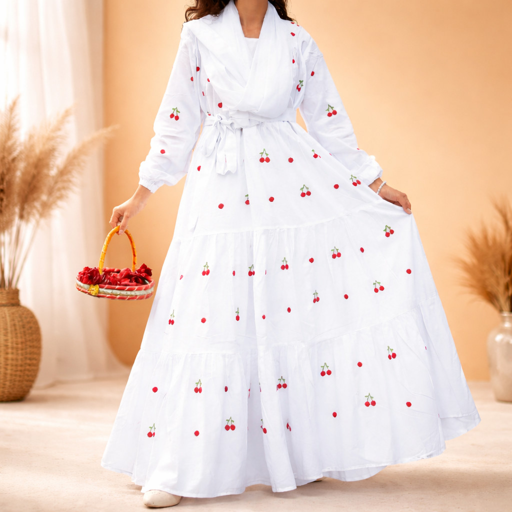 ✔ পুরো ড্রেসে সুই-সুতা দিয়ে করা চেরি হ্যান্ডওয়ার্ক